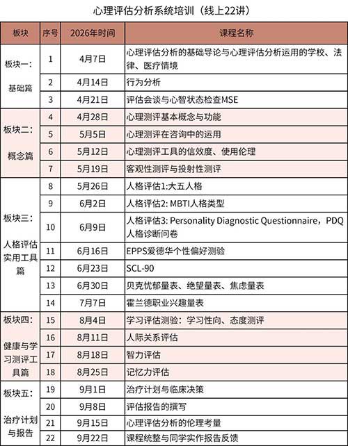 有夯实或精进心理评估分析技能需求的心理咨询师/治疗师;