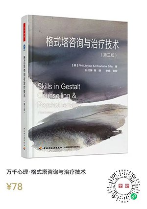 1.叶红萍等译(2016)。格式塔咨询与与治疗技术(第三版) 。中国轻工业(Phil Joyce & Charlotte Sills(2014):Skills in Gestalt Counselling & Psychotherapy).
