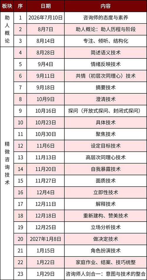 正如大树之繁茂,源于其根系之深广,心理咨询师的基本功训练,正是我们稳固根基、拓宽视野的关键所在。它让我们在助人自助的旅途中,步伐更加稳健,视野更加辽阔。加入我们,一起踏上这场夯实咨询技术的旅程,让精微咨询技术成为您职业生涯中的坚实后盾,引领来访者迈向更加光明且充满希望的未来。